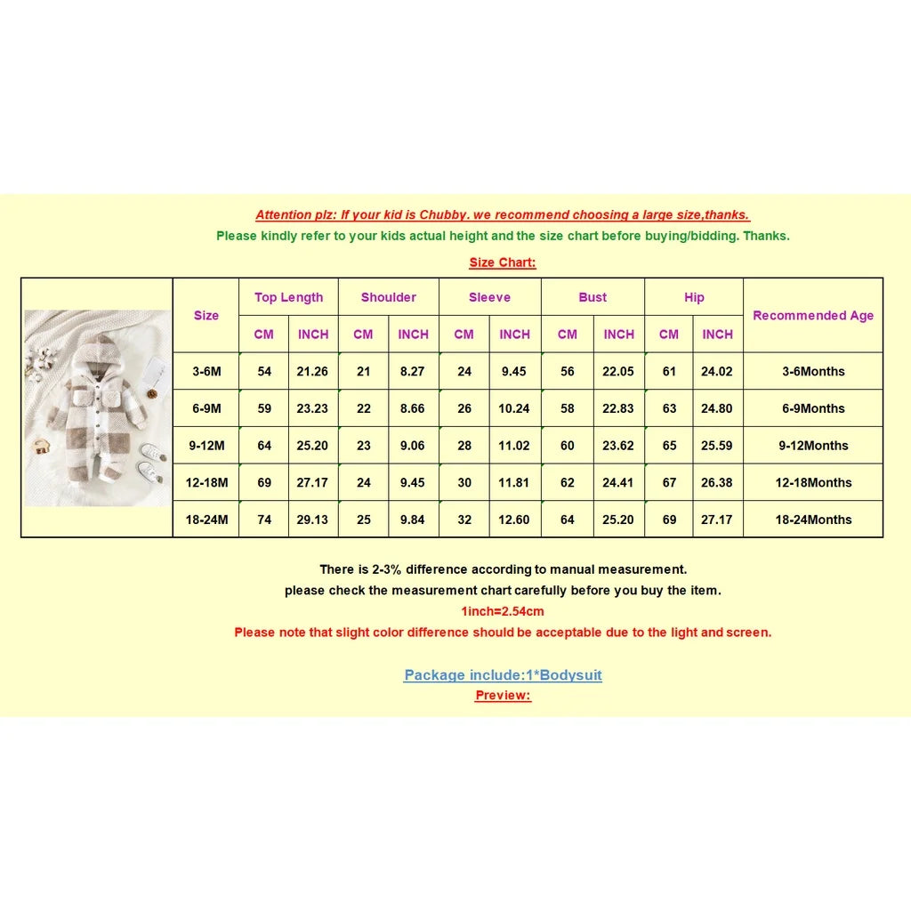 Made from high-quality polyester with a tatting weave, the romper is soft, durable, and gentle on sensitive baby skin. The single-breasted closure makes dressing and undressing simple for parents, while the long sleeves and full coverage keep little ones warm all winter long.