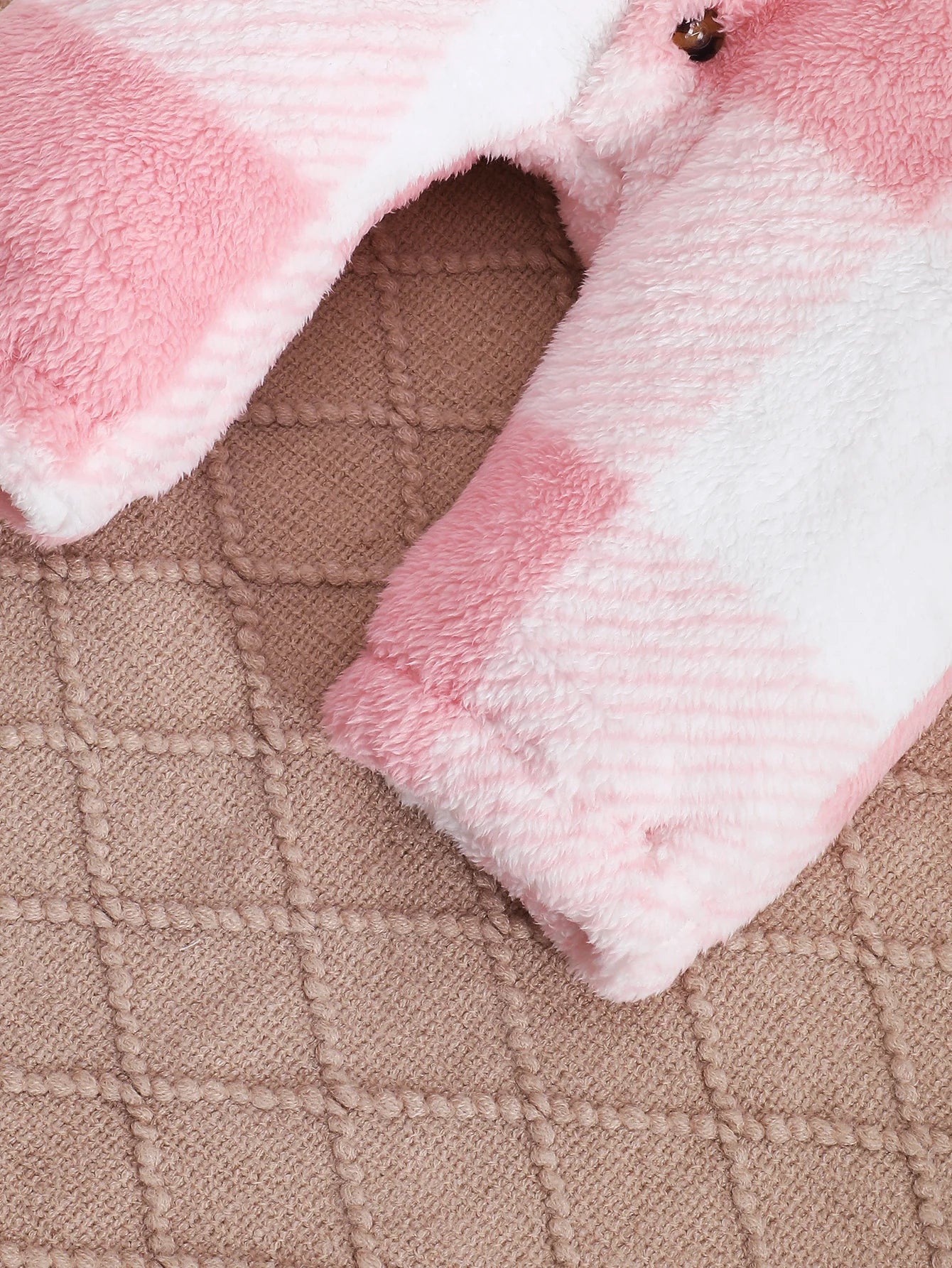 Wrap your little one in warmth and style with the Plush Lovies Romper. Designed with love and comfort in mind, this romper keeps babies snug while showing off an irresistibly cute, fashionable look. The plaid pattern adds timeless charm, while the hooded design provides extra coziness for chilly days.